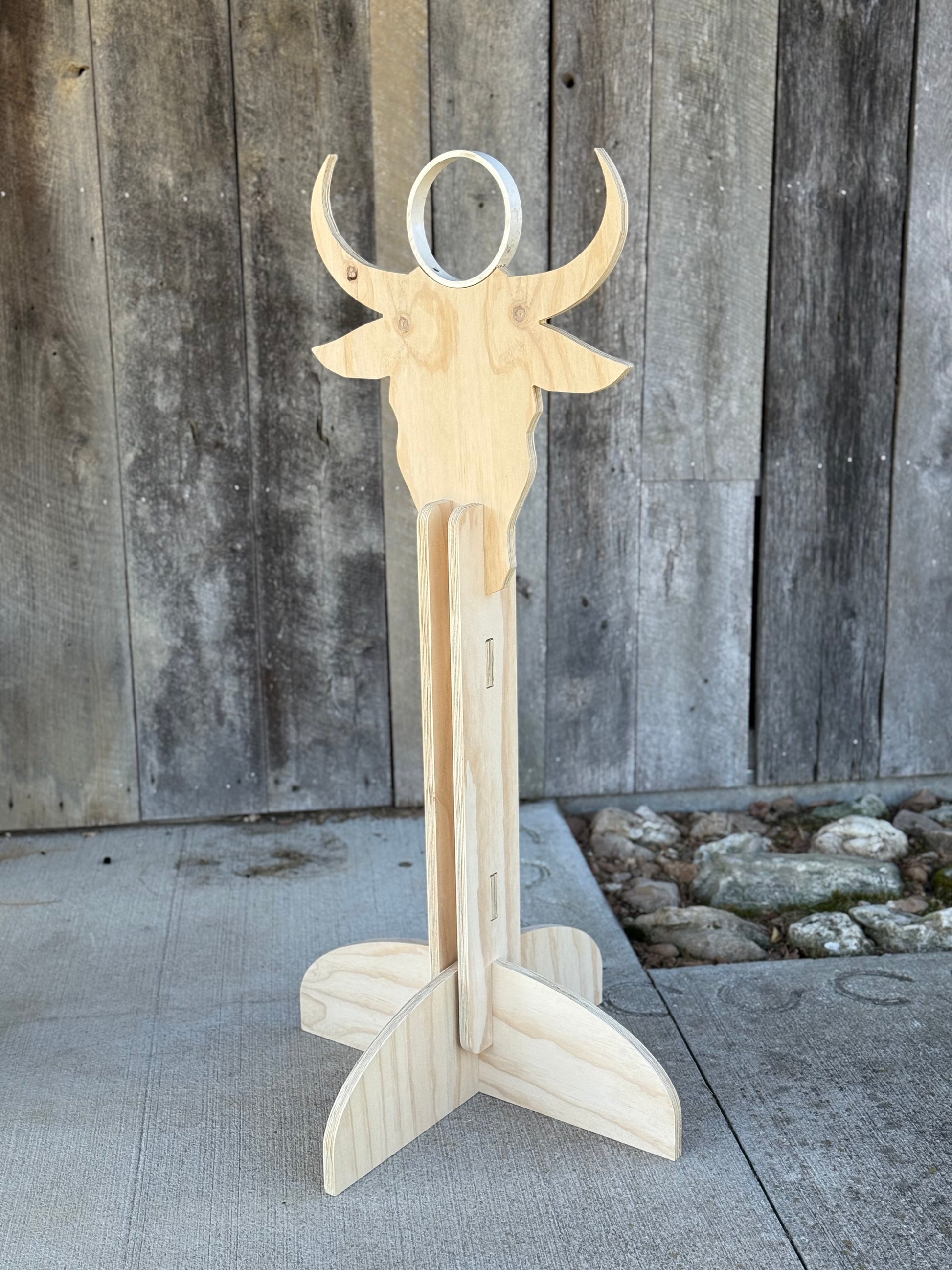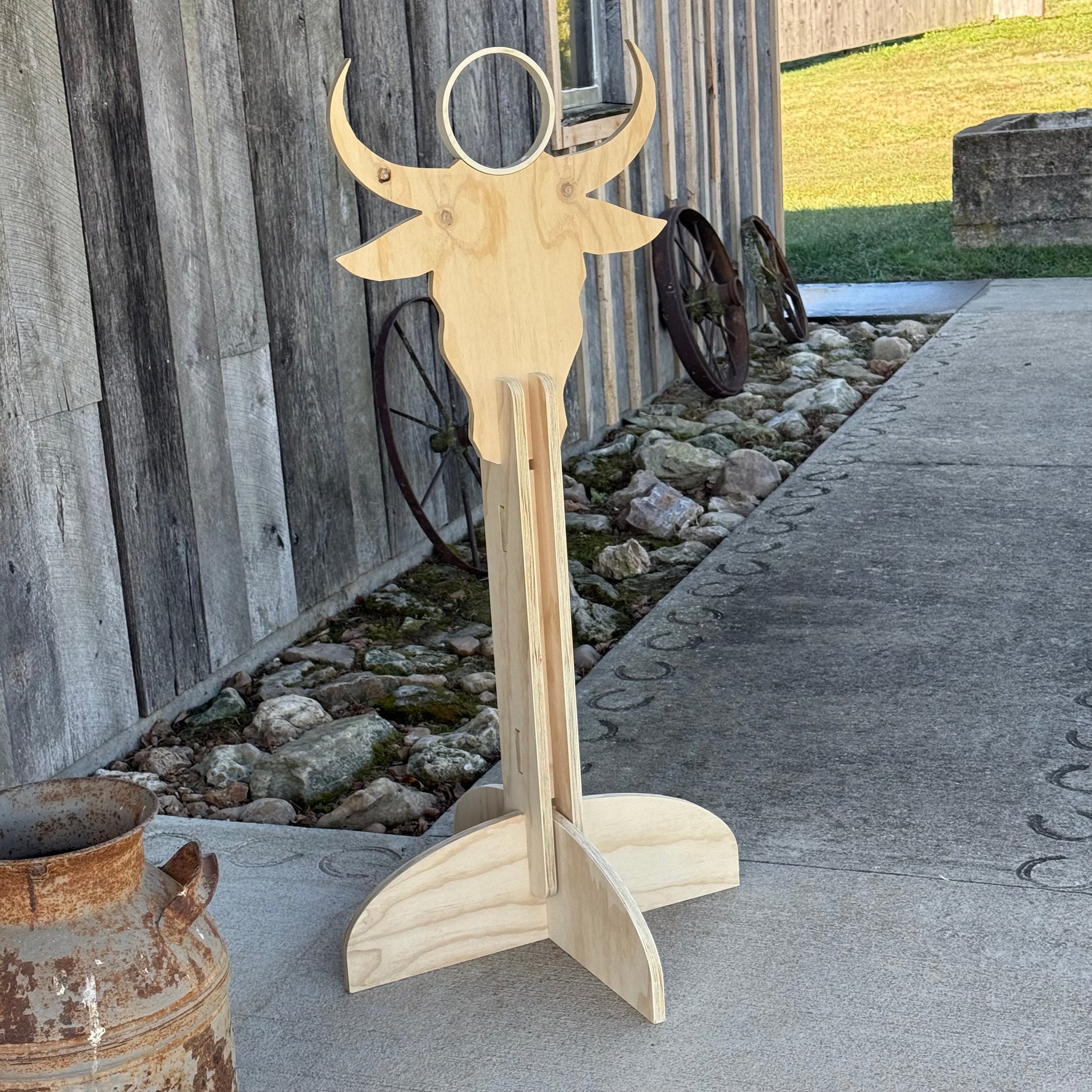 This is an equine obstacle with a magnetic hoop to mimic spearing, commonly used in Working Equitation. Made from quality 3/4" plywood, the ring is made from 6" PVC, with 3 inset magnets.